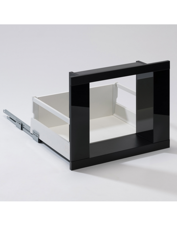 Vestavná neohřevná zásuvka je vhodná pro umístění pod KAFEbox. Její sofistikovaný vzhled s černým i bílým sklem je ideální pro moderní interiéry a nabízí praktické řešení pro uspořádání kuchyňských spotřebičů. Výsuv je v bílé barvě. S rozměry šířky 59,5 cm a výšky 14 cm je navržena tak, aby dokonale pasovala pod kompaktní mikrovlnné trouby, parní trouby nebo kávovary standardní výšky 45 cm. Tato zásuvka umožňuje flexibilní umístění podle individuálních potřeb a preferencí, což usnadňuje integraci do kuchyňské sestavy a vytváří harmonický celkový dojem. Zásuvka se snadno otevírá jemným zatlačením díky systému TIP-ON. Uvnitř můžete uložit nádobí, plechy a další kuchyňské potřeby, které budete mít vždy po ruce.